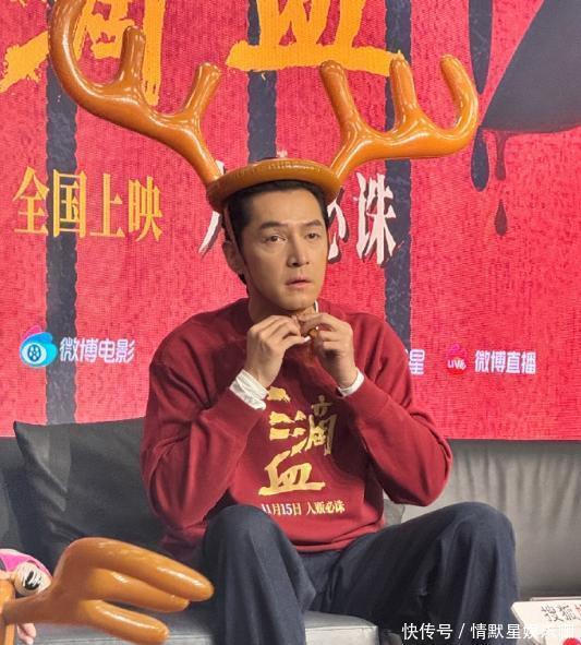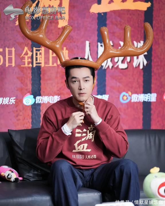 11月13号,他跟女主角文淇一块儿去新浪走访,没想到照片一发出来,立马引起了大轰动!从网友拍的照片来看,胡歌那天穿了一件红色的卫衣,上面还有电影的名字,坐在沙发上时头上还顶着个麋鹿形状的气球呢。