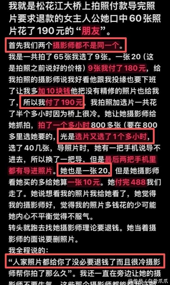 女生朋友表示自己拍照也是20元一张,根本不是女生说的那样。