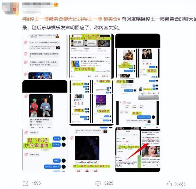 当热搜榜单出现“王一博聊天记录”这几个字眼时,瞬间引发了网友们的热议。 曝出的内容疑似是和綦美合的聊天记录,綦女士是位“白富美”,父亲是企业家。 她与娱乐圈里的很多明星是朋友,在被曝出的聊天记录中,包含了对许多艺人的负面评价。 包括和小王合作过的,并晒出了一些和他行程相关的细节,大致一看确实相吻合,但经不起推敲。 有不少网友发现,截图存在明显拼接痕迹,而且语言风格也和小王不太一样。 和小王熟悉的人曾表示,他私底下交流常用表情包,而且语言礼貌简洁,不会随意攻击别人。 随后他的公司发布了声明,并指认曝料的账号散播谣言诽谤,将对造谣传谣的人追究法律责任。 有网友通过录屏比对发现,曝料账号的登录身份是“李思瑾”,其第一次发布内容时忘记打码,暴露了身份信息。 有消息称对方是06年出生的孩子,而后续的操作也是自导自演的闹剧。 不仅如此,聊天记录中跳转社交平台的操作,显示的时间是2月18日,但小王最后的上线时间是17日。 而且早在19年他就公开声明更换被泄露手机号,这次曝出的聊天截图中,不仅有对多位艺人的“贬低”。 还有两人的暧昧对话和高消费吐槽,虽然如今已经得到澄清,但也让小王和綦女士受到了一定的影响。 两人之前就被传过绯闻,要知道谣言对于一个公众人物来说,杀伤力是非常大的。 估计造谣者怎么也想不到,这场精心策划的“猛料”会以如此荒诞的方式收场,真是偷鸡不成蚀把米。 网络不是法外之地,一旦被证实造谣,如果被追究是要承担责任的,小王这次真是遭受“无妄之灾”了。