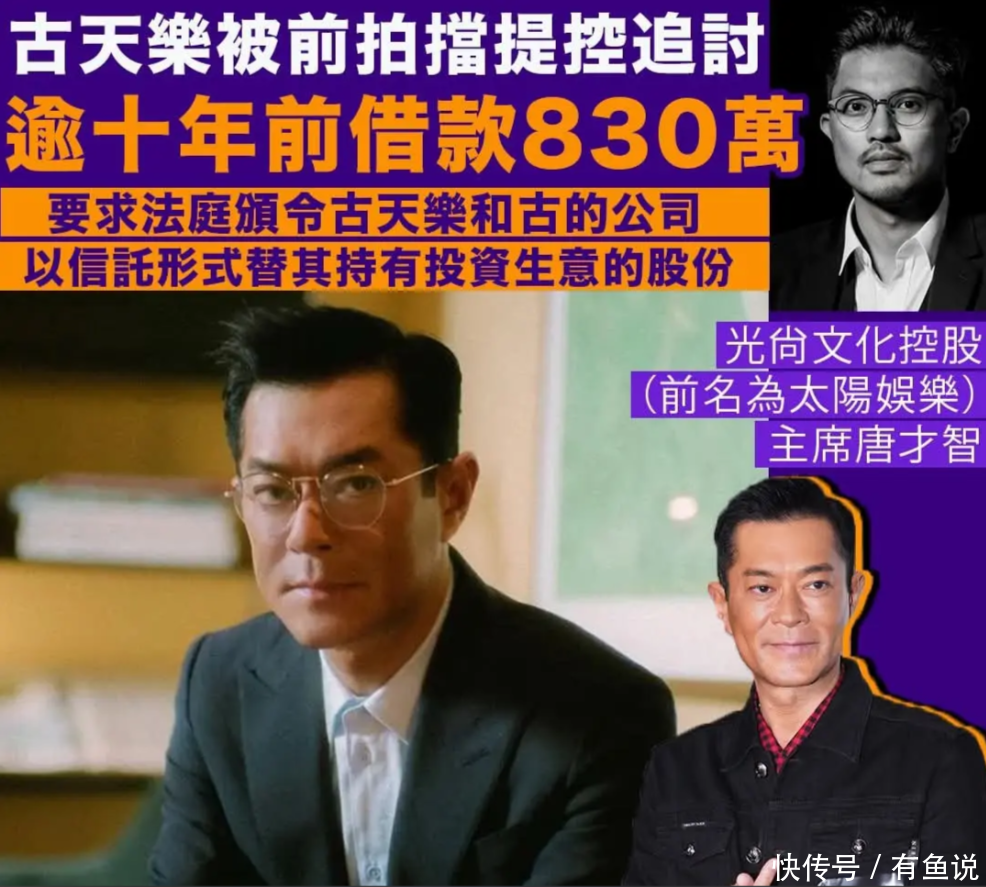 尤其今年2月份他更被前生意伙伴——唐才智起诉讼,说古天乐在2013年提议合投公司,但无力支付约定的投资款,只能向唐才智借了830万港元。