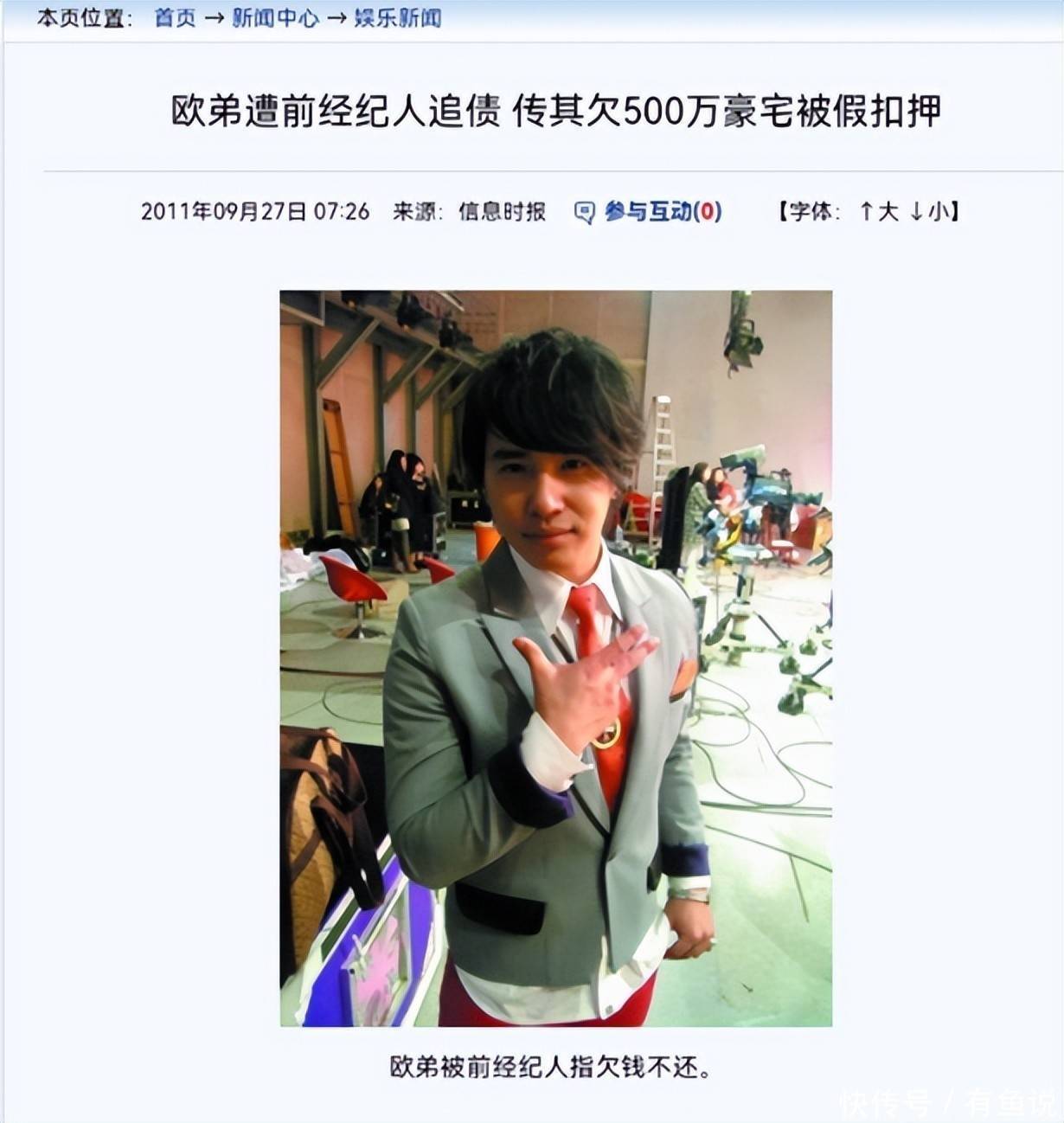 2011年,欧弟正在《天天向上》如鱼得水的时候,突然被前经纪人曝出借钱不还,搞得饭圈一片哗然。